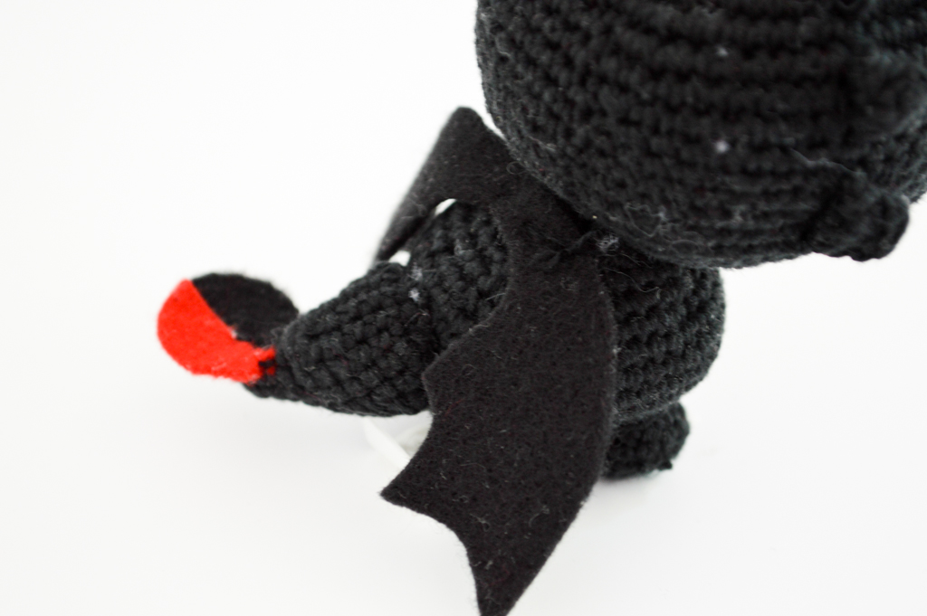 Einige von euch haben villeicht die Skizze auf Instagram gesehen, die ich im Vorfeld angefertigt hatte. Ursprünglich sollte der Kleine aufrecht sitzen, während der Umsetzung dachte ich, dass er auf allen Vieren sicher auch süß aussähe. Die Details wie Augen, Flügel und Schwanz habe ich aus Filz angefertigt und später angenäht, beziehungsweise aufgeklebt.