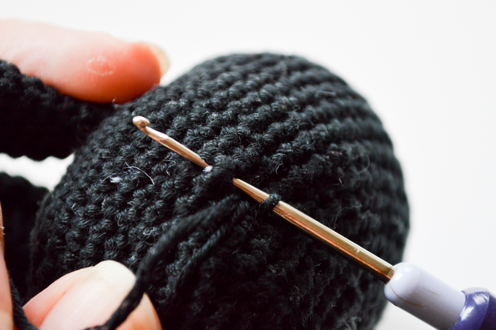 Rnd 22: abn jede 4. fM →ab hier die Kugel mit Füllwatte füllen