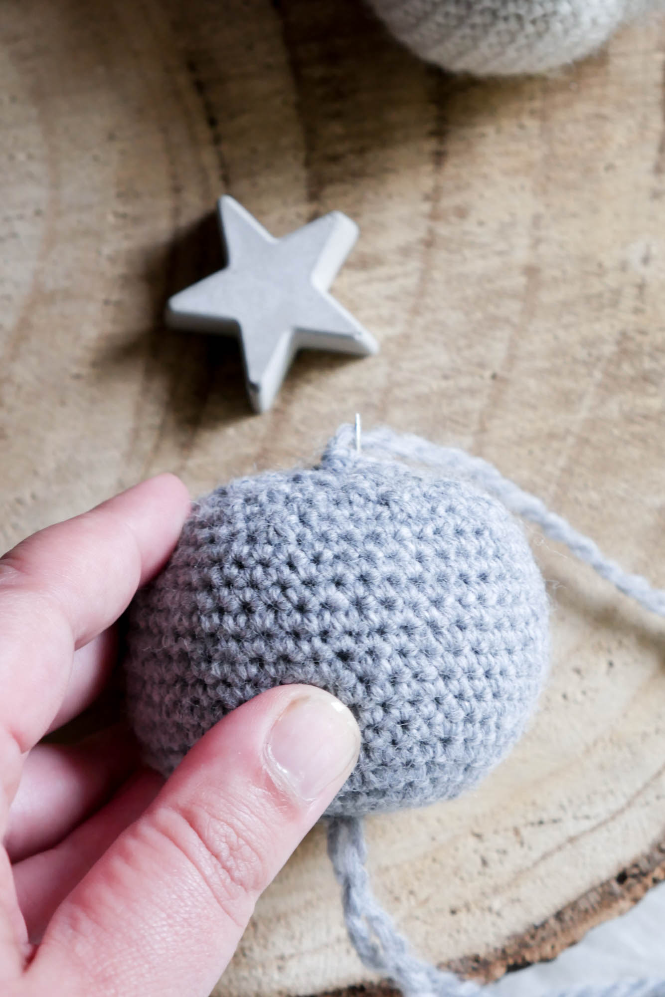 22.+23.Rnd: abn. jede 4. fM (ab hier kann die Kugel mit Füllwatte ausgestopft werden)