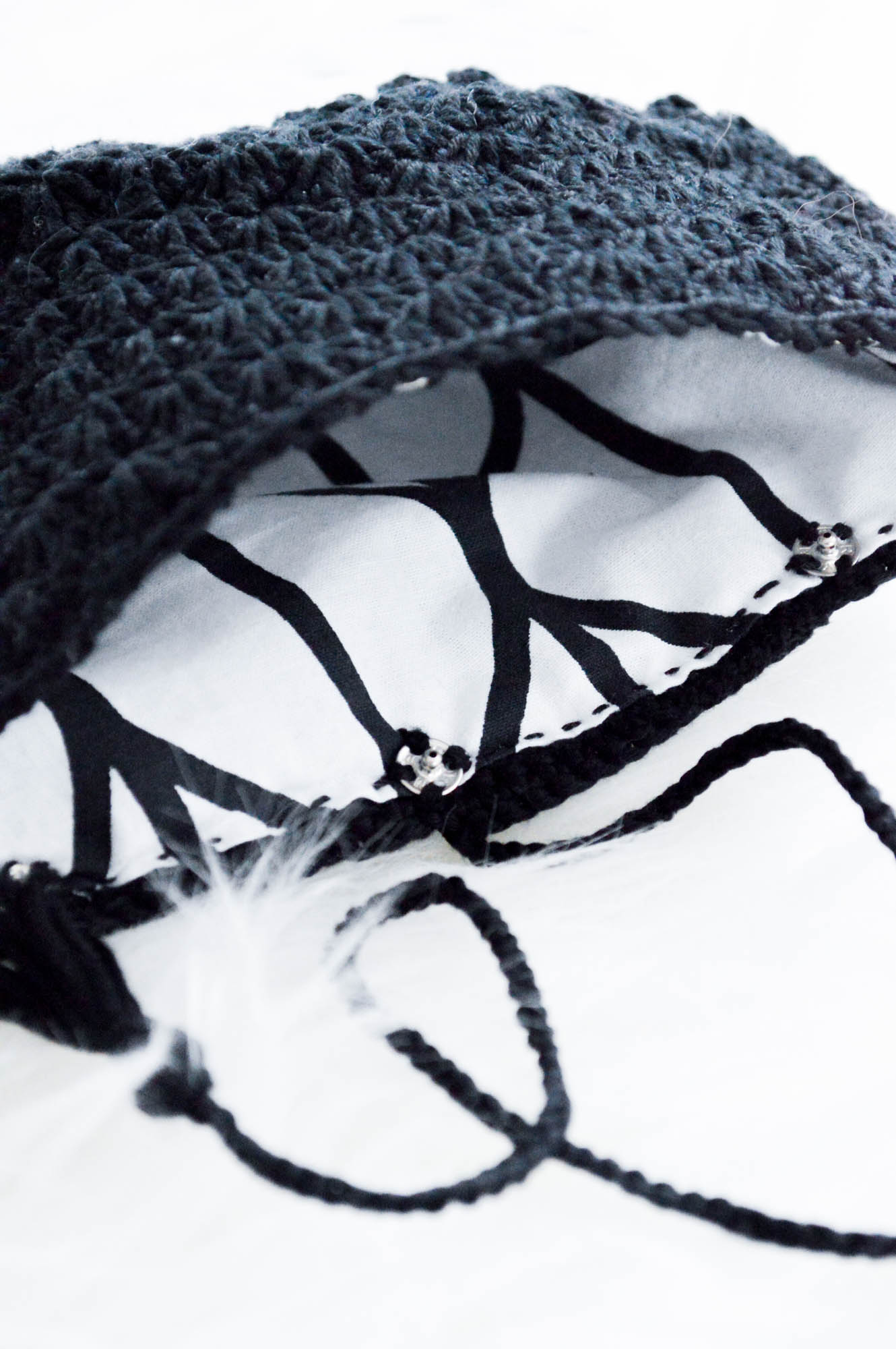 Sobald die Innentasche mit der Häkeltasche veräht ist könnt ihr noch Drucknöpfe anbringen, damit der Inhalt eurer Tasche auch da bleibt wo er soll. Wenn ihr besser im Nähen seid als ich, könnt ihr auch die Innentasche mit einem Reißverschluss vernähen, eher ihr sie in der Tasche fixiert.